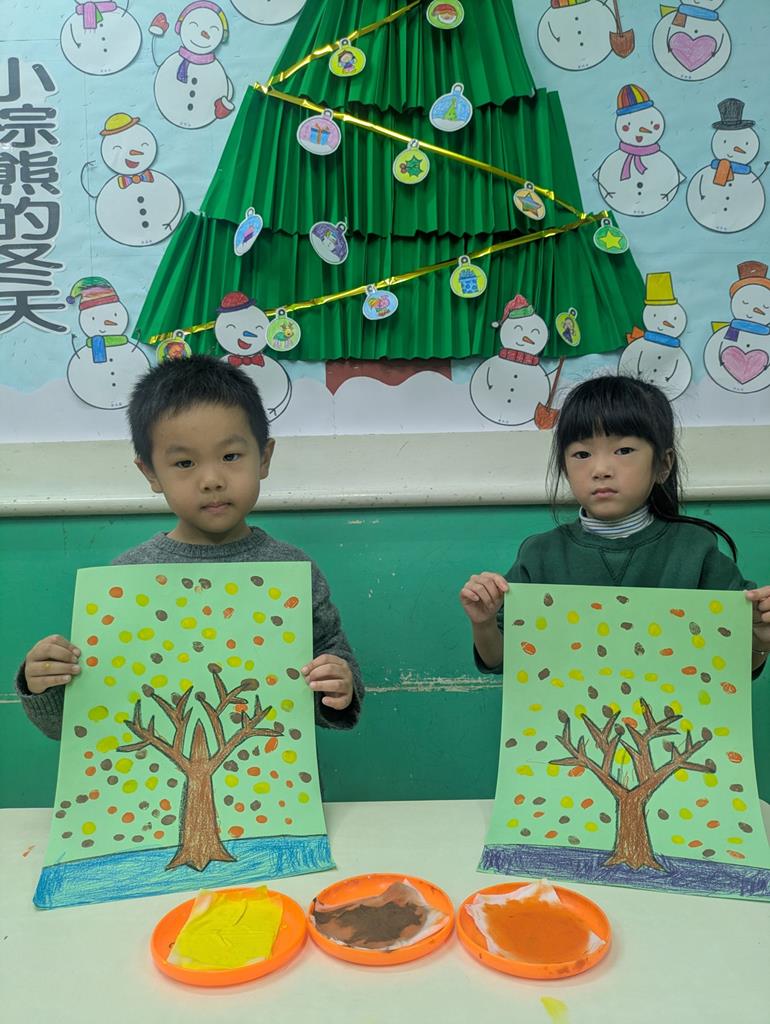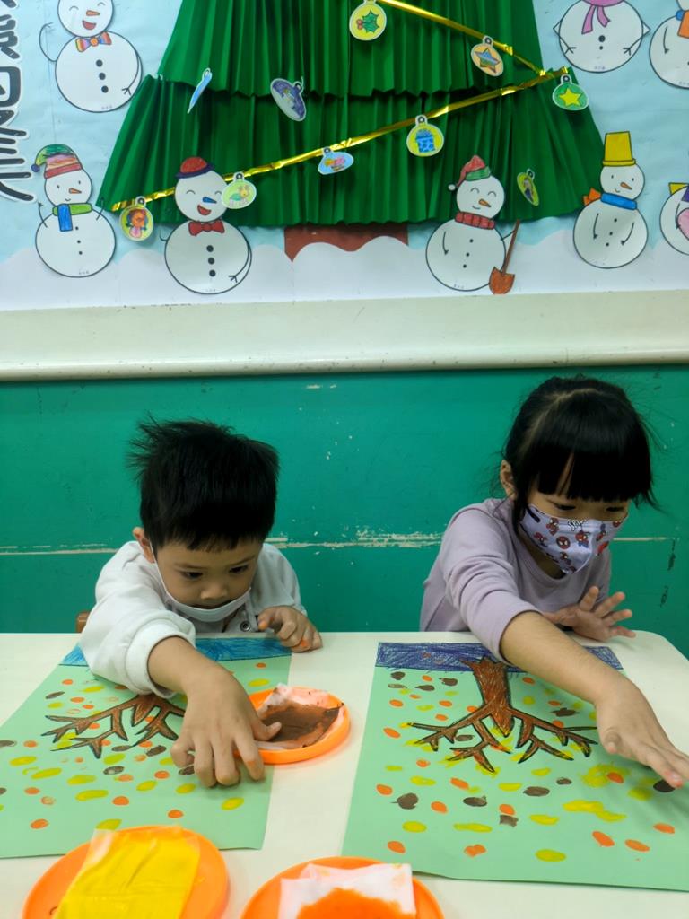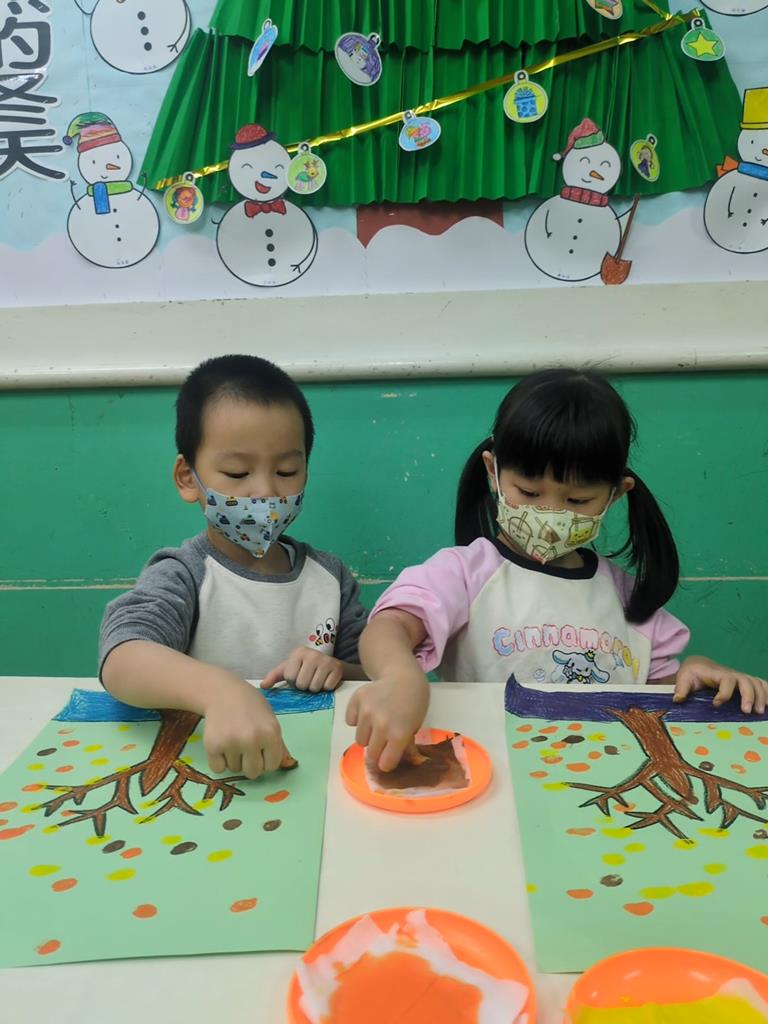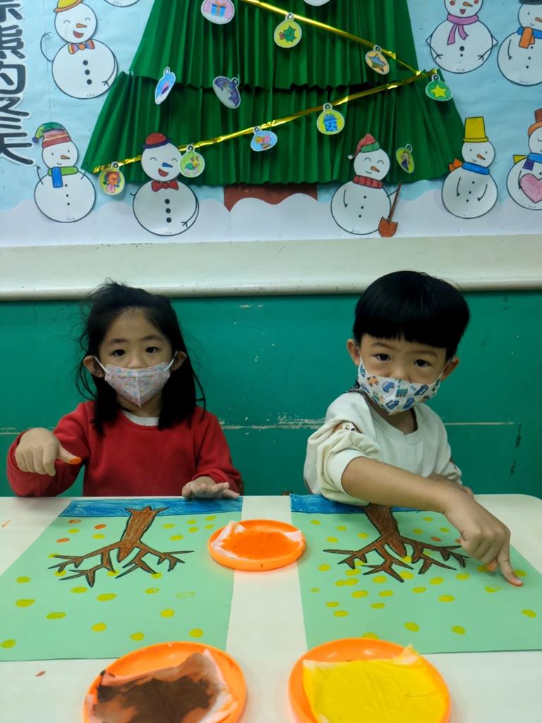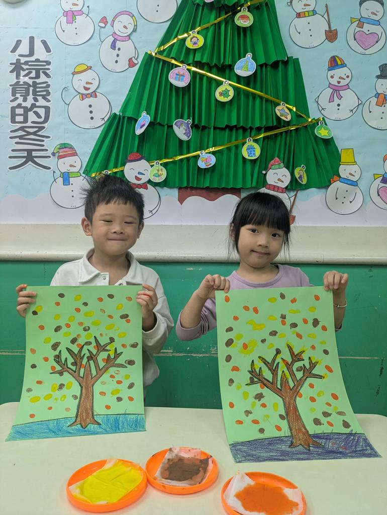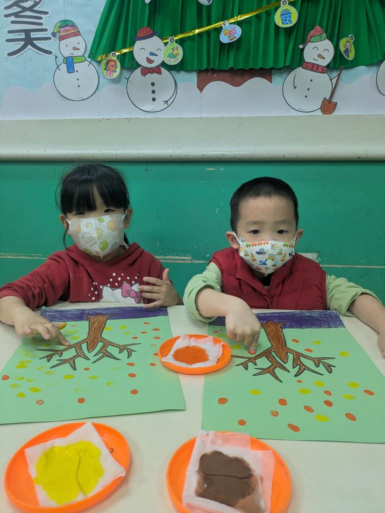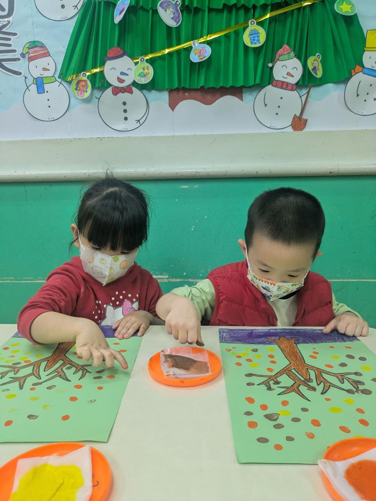 運用指印蓋出秋天的樹葉 (1)