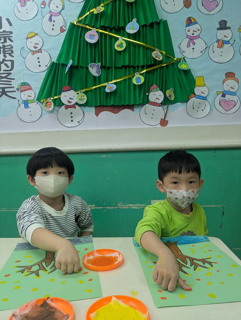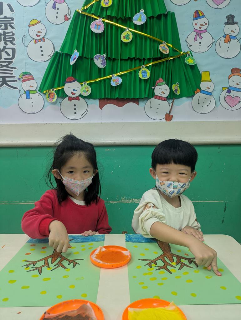 運用紙捲蓋印出雪人的身形模樣 (20)
