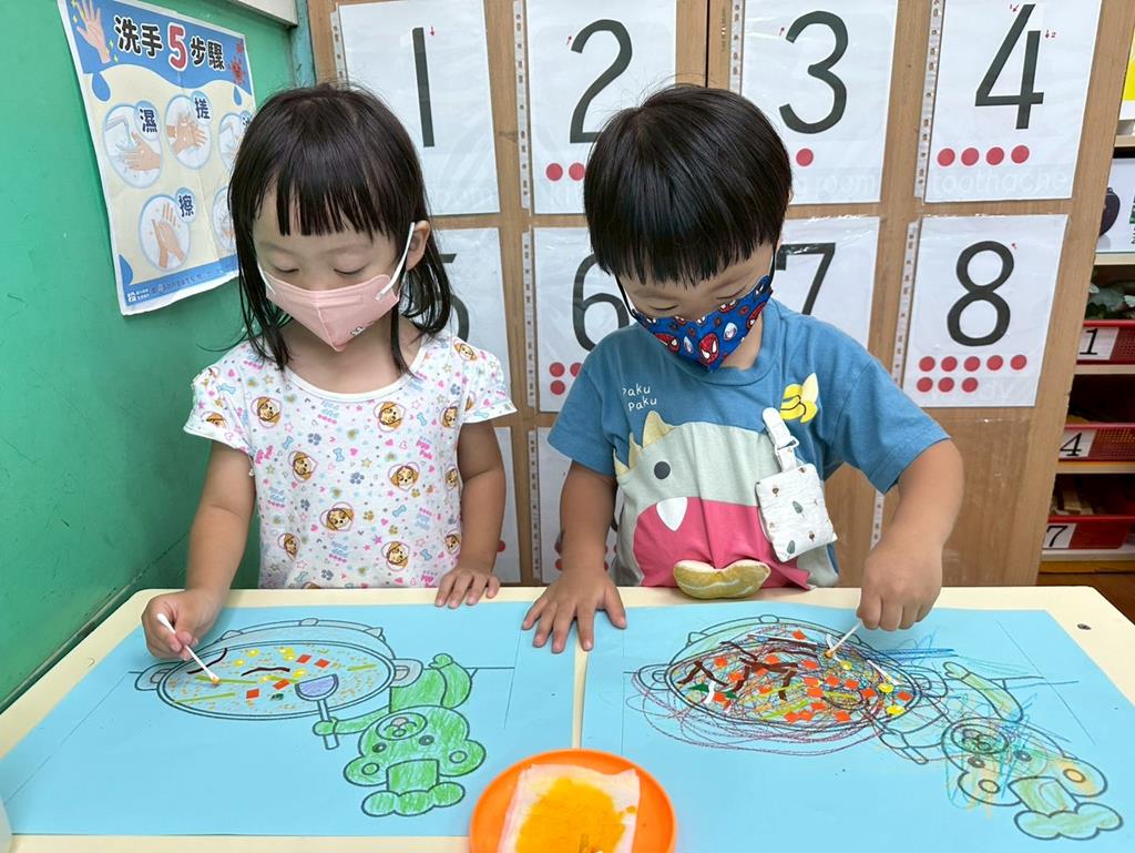 2025.9.16 主題創作~小熊廚師來炒飯(棉花棒點畫) (14)