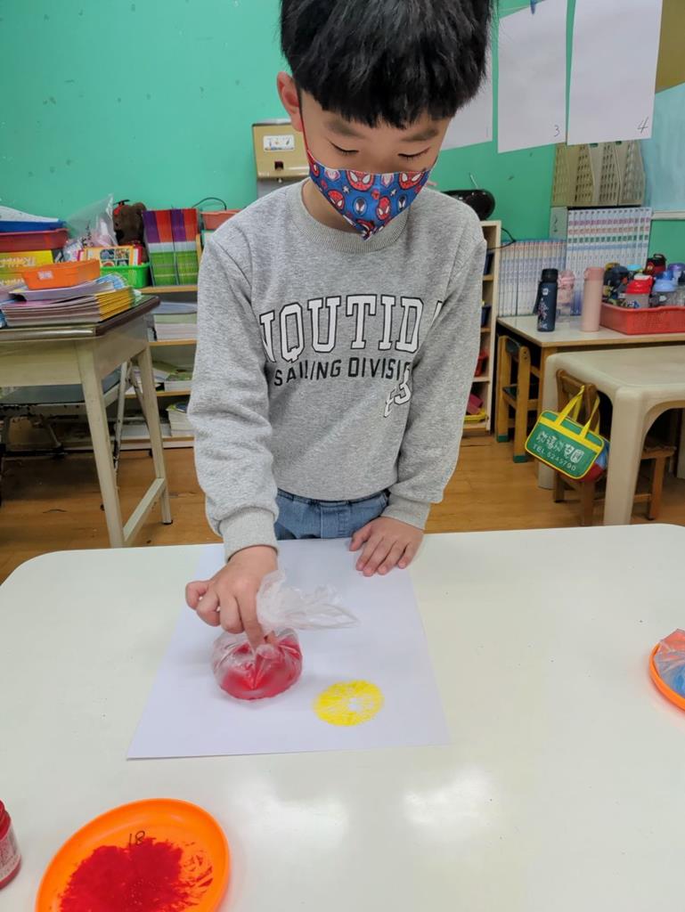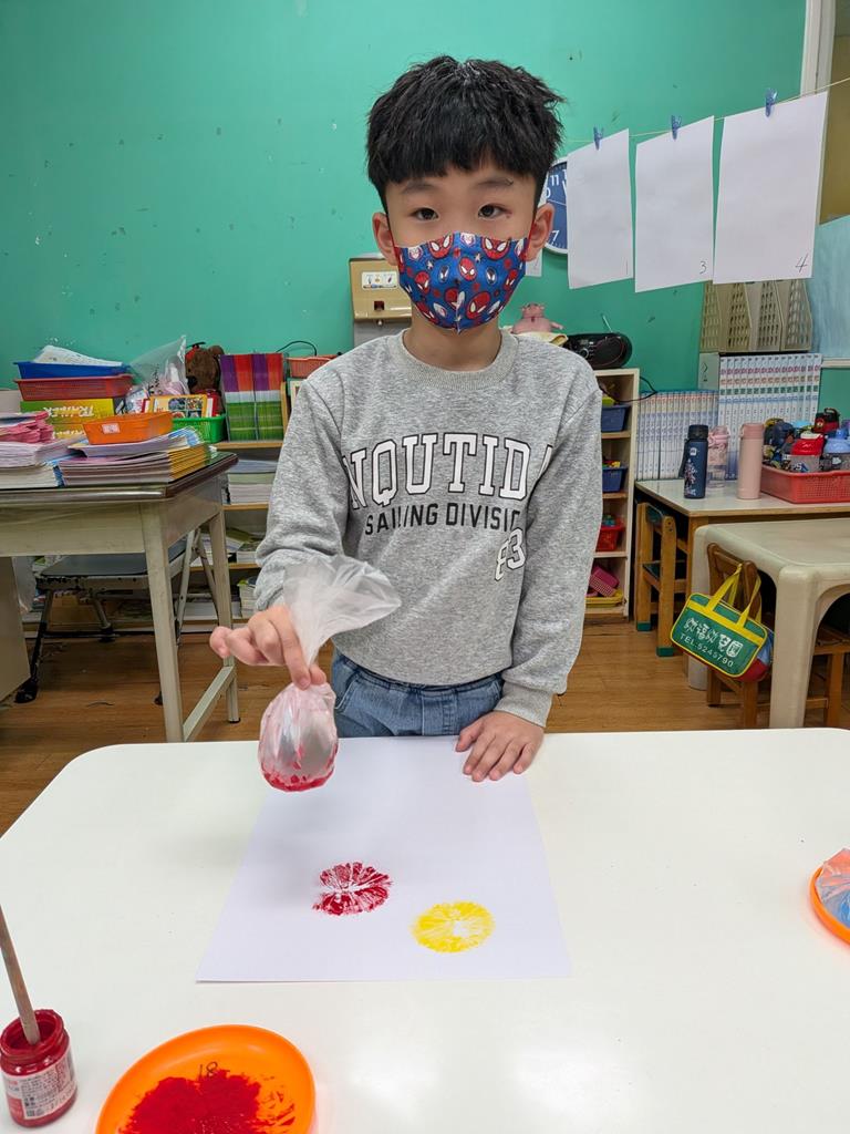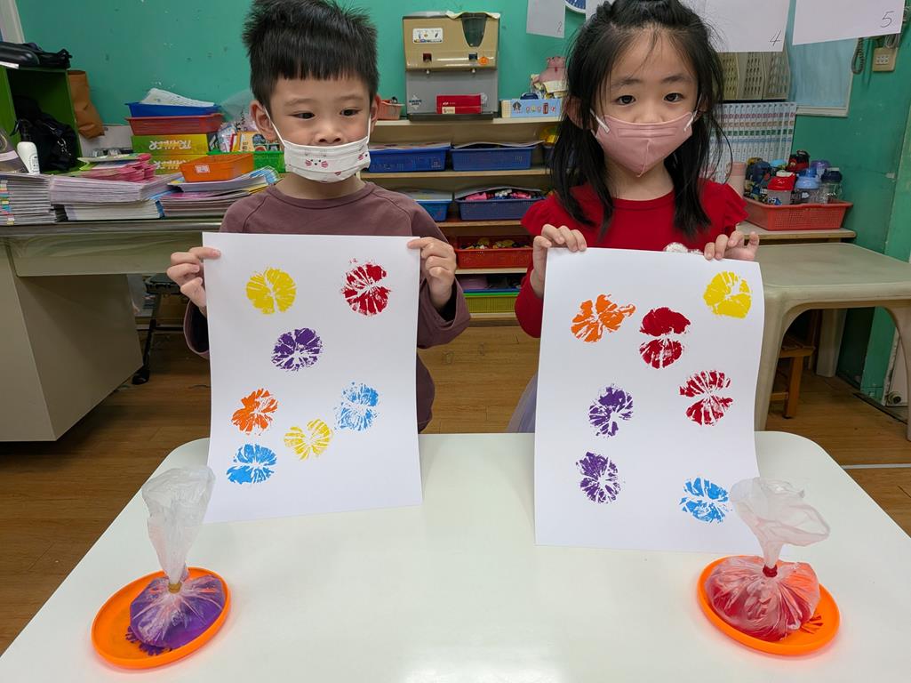 利用塑膠袋注入水蓋印出花朵的樣貌 (23)