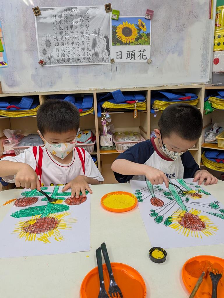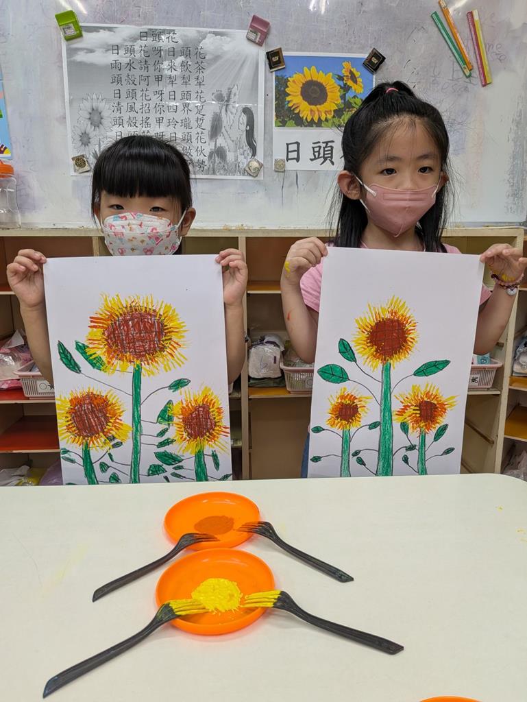 運用叉子壓印出花瓣向日葵完成 (1)
